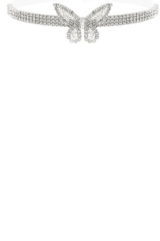 Cubic Zirconia Butterfly Charm Choker Necklace