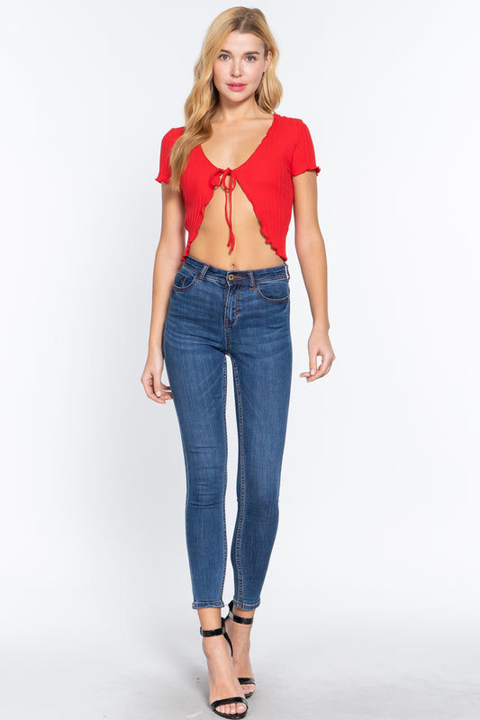 Short Sleeve V-neck Crop Top