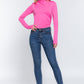 Elevate your style with the Long Sleeve High Neck Shirring Detail ITY Knit Bodysuit in Pink. Add it to your cart now and experience the perfect combination of fashion and comfort!